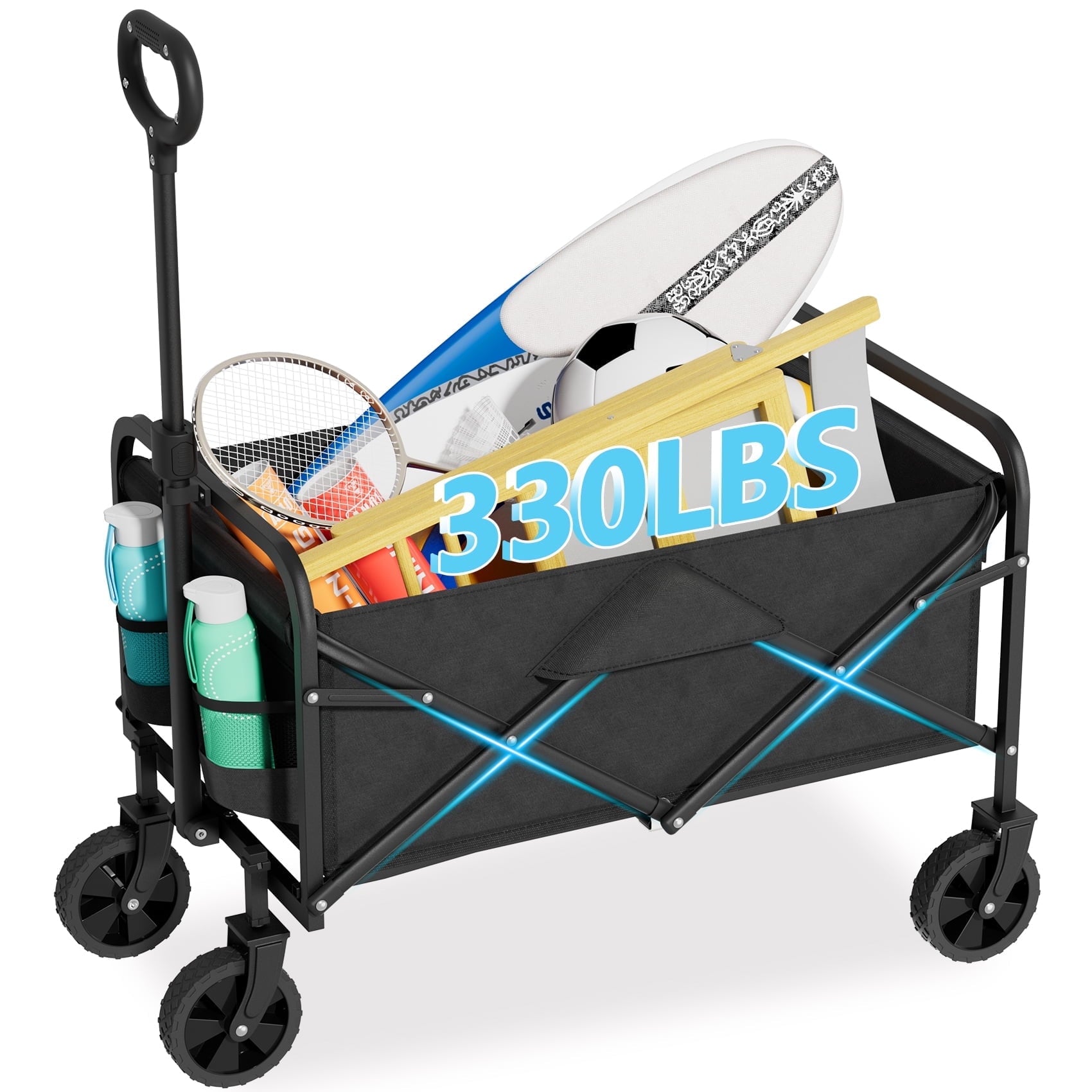 JOZ 330lbs Folding Garden Wagon Cart with Wheels, Collapsible Shopping Wagon, Outdoor Utility Wagon, Beach Wagons Carts Foldable, for Kids & Adult
