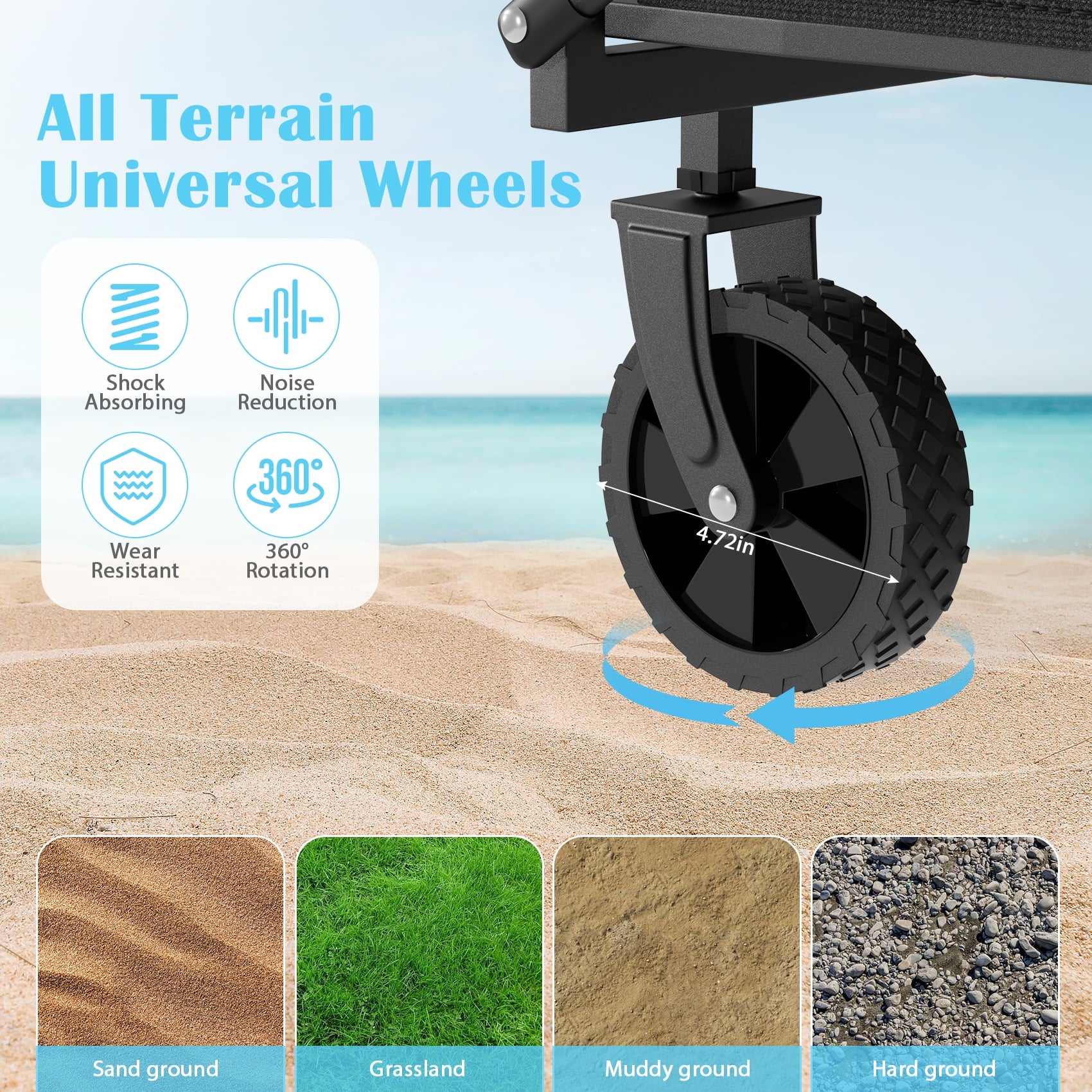 Heavy-Duty & All-Terrain: Built with a sturdy, rust-resistant metal frame, 360° rotating all-terrain wheels, and a 330 lbs capacity, this folding wagon handles various surfaces with ease, from sandy beaches to garden paths. Whether you're using it as a garden cart, beach cart, or utility wagon, it’s equipped to handle it all.